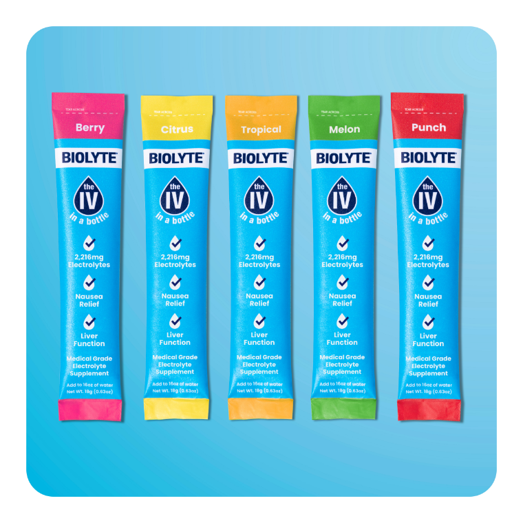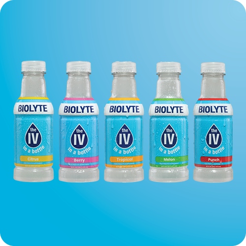 Originally inspired by our founder's wife's battle to stay hydrated throughout her chemotherapy treatments, BIOLYTE now provides the medical benefits of an IV bag to many, helping them feel better no matter what they are facing.
